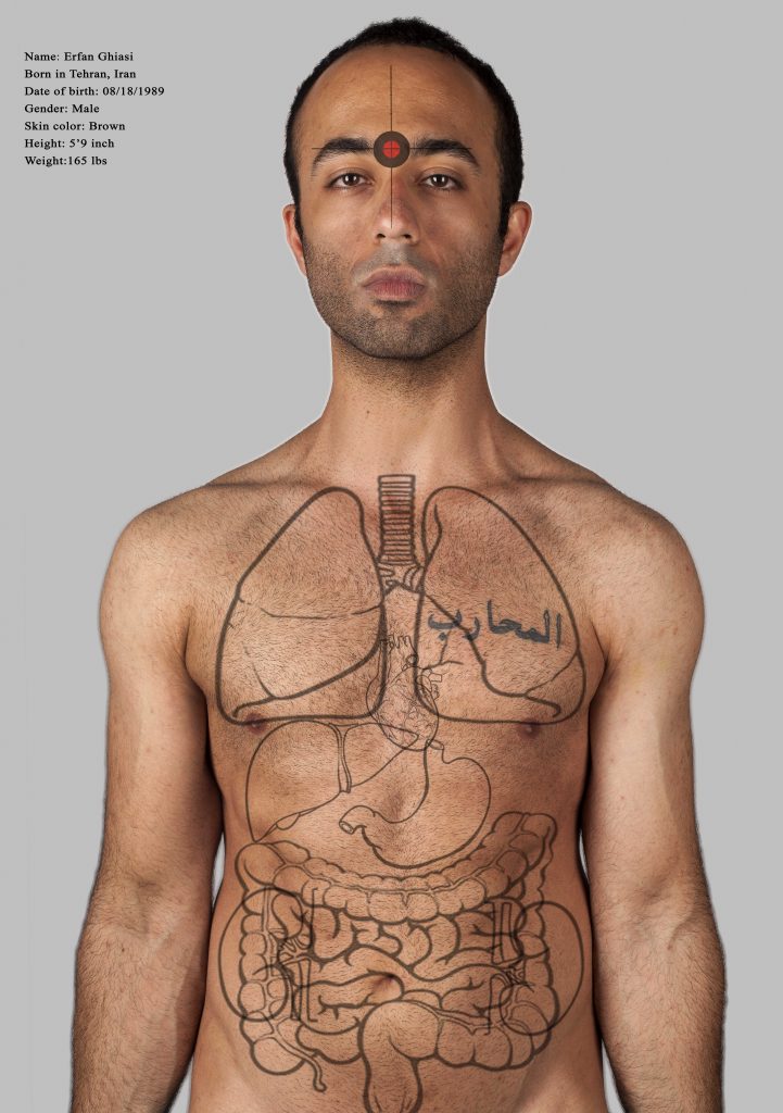 The “Sacred Man” project presents two portraits of the members of marginalized groups as shooting targets. The targets also show information about the person in the image such as their name, date of birth, and the city where they are born.